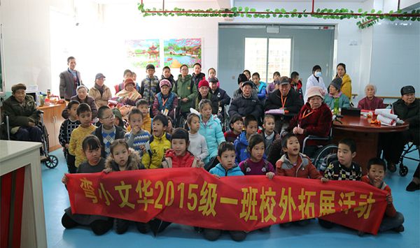 2018年2月5日下午14点30分迎着这冬日的暖阳,湾小文华校区2015级1班的同学们排着整齐的队伍,在老师和家长的带领下来到了柳州市城中区安心颐养中心,开展校外拓展活动---敬老爱老,从我做起。参加此次活动的同学们都有明确的分工,还贴心的为老人们带来了各种各样的礼物,有毛巾、袜子、帽子、棉鞋、护手霜、牙膏、麦片等。